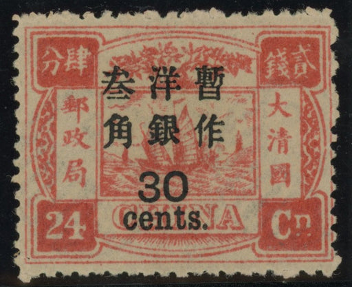 China 1897 30c on 24ca rose-carmine large figure surcharge on Dowager Empress, SG56
